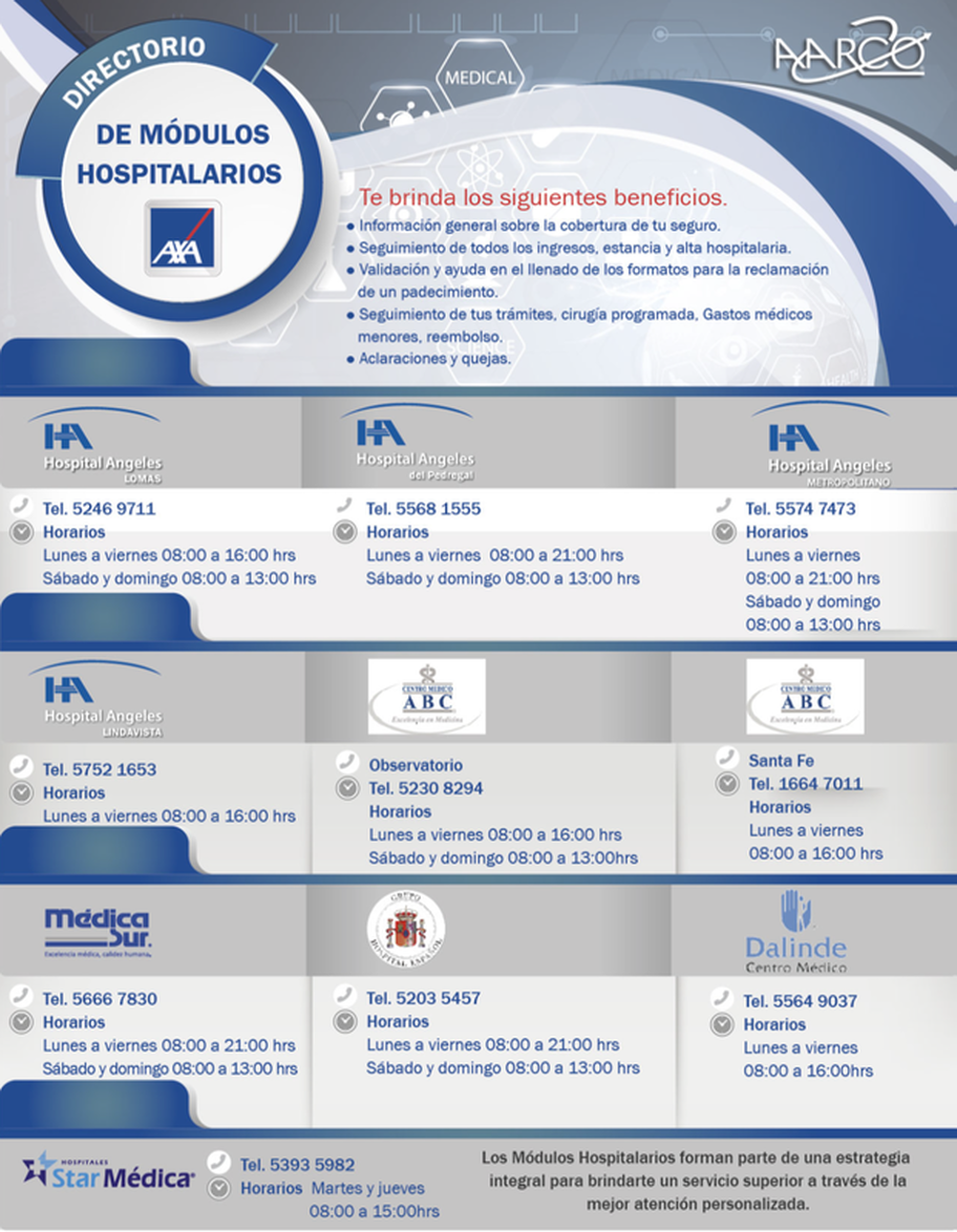 Es muy importante realizarlo en laboratorios o gabinetes en convenio. Estos aparecen en www.axa.mx o al 01800 911 9999. En todo caso, con gusto nosotros podemos proporcionarle la información. También se pueden aprovechar algunos descuentos mostrando la tarjeta del seguro.